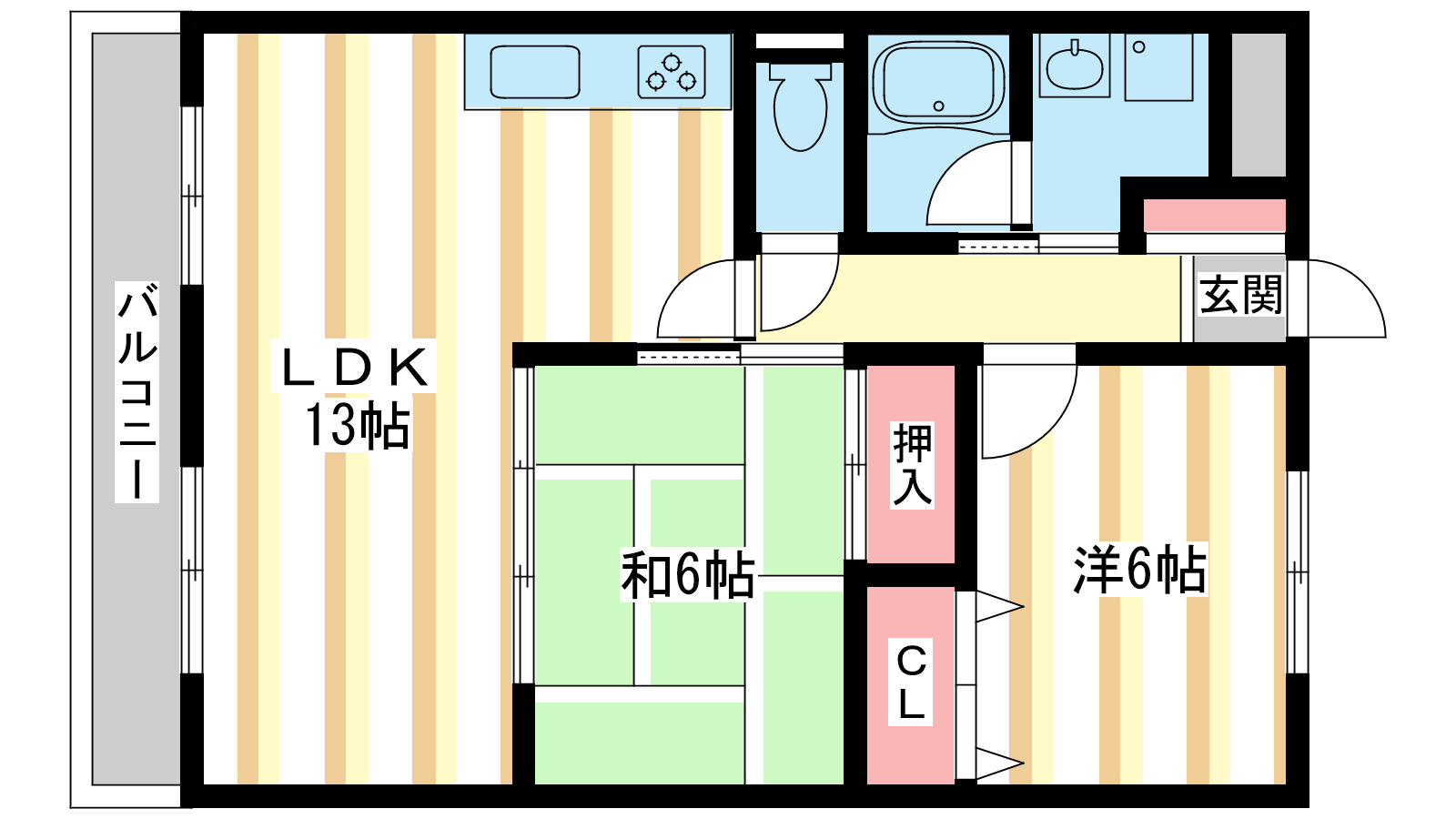 - LDK13帖、和室6帖、洋室6帖