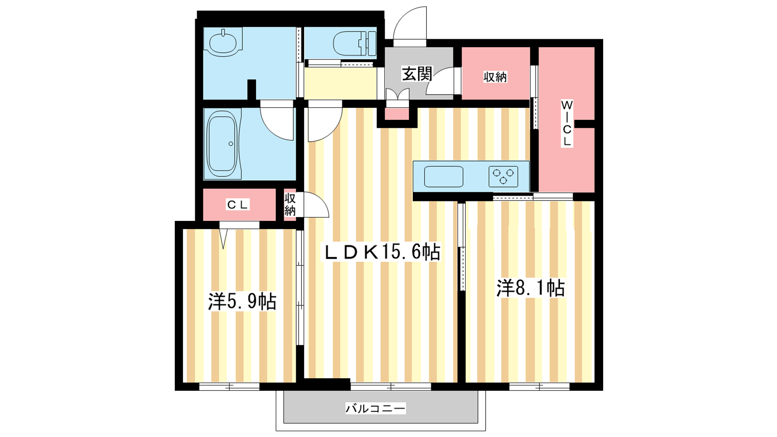 - LDK15.6帖、洋室8.1帖、洋室5.9帖