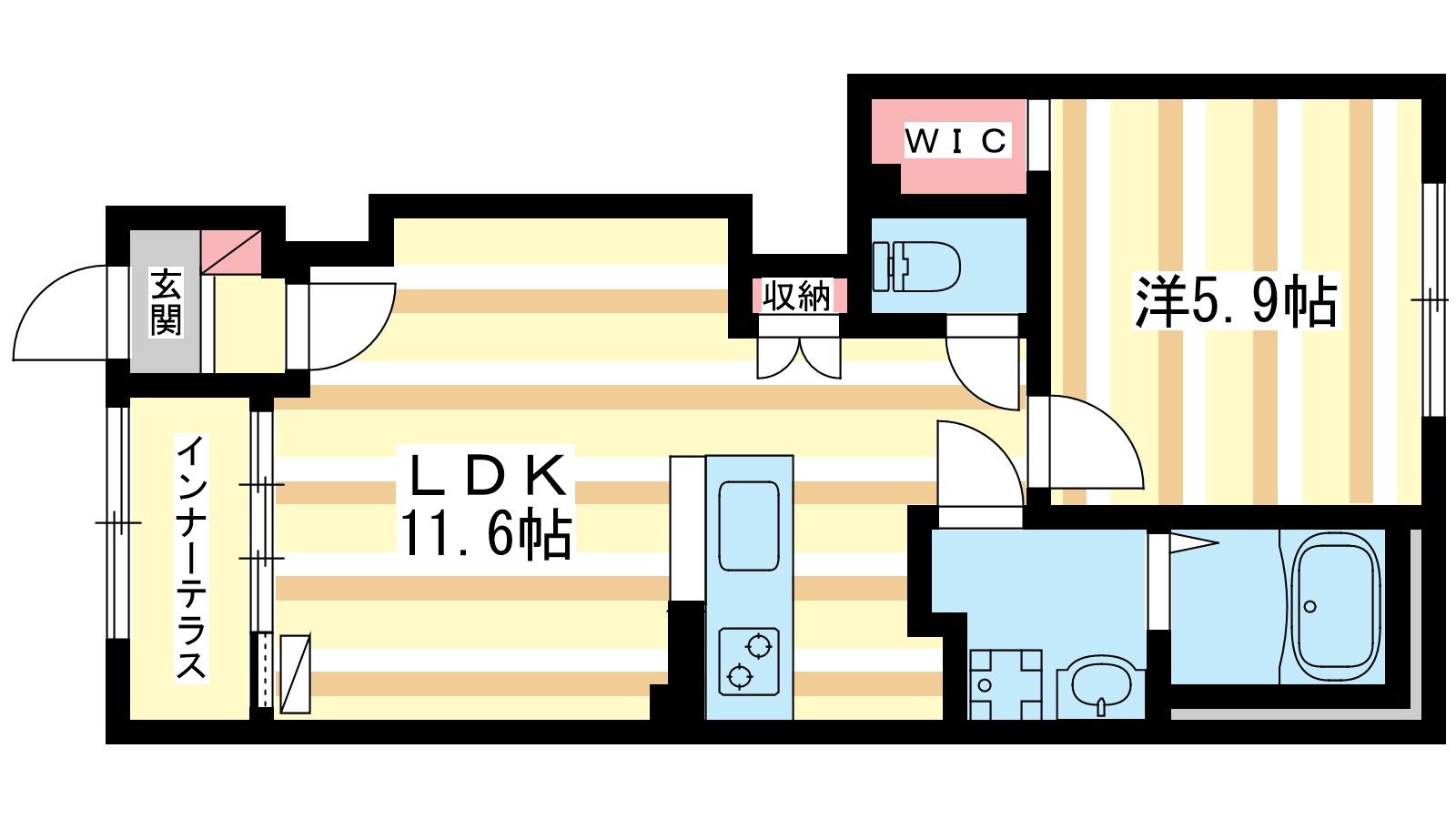 - LDK11.6帖、洋室5.9帖
